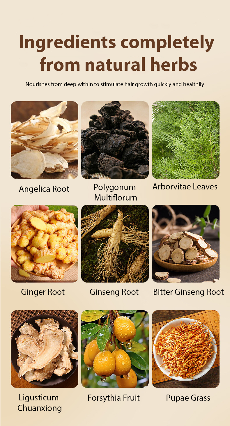 1️⃣ Selamat & Berkesan: Selepas hanya 1 bulan penggunaan, anda akan melihat banyak rambut baru tumbuh, memperbaiki keadaan rambut nipis, rambut gugur, memperbaiki keadaan uban tanpa membuat rambut kusut atau kering.